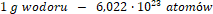 obiektów elementarnych możemy obliczyć liczbę atomów wodoru obecną w 4 g wodoru: