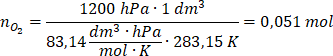 Korzystamy z równania Clapeyrona w celu obliczenia liczby moli tlenu: