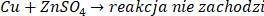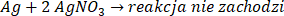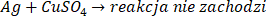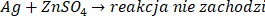 3. Srebro jako metal mniej aktywny od miedzi oraz cynku nie wypiera ich z roztworu, więc reakcje nie zachodzą.
