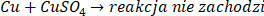 2. Miedź jest bardziej aktywna tylko od srebra, w pozostałych przypadkach reakcja nie zachodzi.