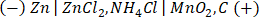 Ogniwo Leclanchégo składa się z katody w postaci elektrody węglowej, tlenku manganu(IV), proszku grafitowego oraz elektrolitu umieszczonych w cynkowym kubku, który jest anodą.