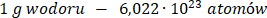 obiektów elementarnych możemy obliczyć liczbę atomów wodoru obecną w 4 g wodoru: