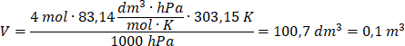 Z równania Clapeyrona wyznaczamy objętość gazu:
