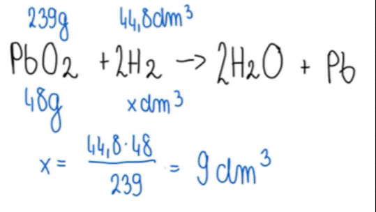 Zapisz w zeszycie równanie reakcji, w której wodór redukuje tlenek ołowiu na czwartym stopniu utlenienia, a potem oblicz, jaką objętość wodoru (w warunkach normalnych) musisz zużyć, żeby zredukować 48 g tego tlenku do ołowiu w postaci metalu.