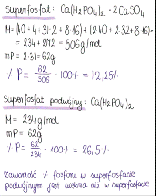 Wyznacz procentową zawartość fosforu w superfosfacie, a następnie zestaw ją z ilością tego pierwiastka w superfosfacie podwójnym.
