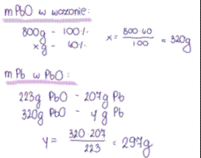 Oblicz, jaka masa ołowiu znajduje się w kryształowym wazonie o masie 800 g, jeśli tlenek ołowiu(II) stanowi 40 procent masy szkła ołowiowego.