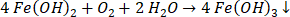 Reakcja utleniania wodorotlenku żelaza(II) pod wpływem tlenu z powietrza:
