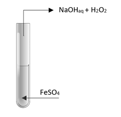 Do probówki zawierającej roztwór soli żelaza(II) dodajemy kroplami niewielką ilość wodorotlenku sodu. Następnie dodajemy kilka kropli nadtlenku wodoru.