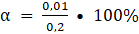 W tym zadaniu musisz podać, ile wynosi stopień dysocjacji związku, którego: stężenie cząstek zdysocjowanych wynosi 0,01 mol • dm-3, a stężenie całkowite to 0,2 mol • dm-3.