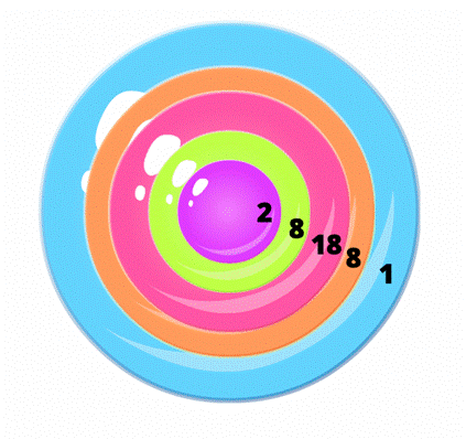 Aby rozwiązać drugą część zadania musimy obliczyć liczbę elektronów na czwartej powłoce. Zacznijmy od określenia liczby masowej rubidu. Jest to 85 u. Oznacza to, że sumaryczna liczba elektronów w atomie rubidu wynosi 85. Odejmijmy liczby elektronów z pozostałych powłok od tej liczby.