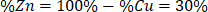 Odpowiedź: Skład procentowy mosiądzu: miedź – 70%, cynk – 30%.