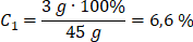 Skoro masa roztworu wynosi 45 g i stanowi 100% to możemy obliczyć jaki procent roztworu odpowiada 3 g substancji (siarczanu(VI) potasu).