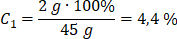 Skoro masa roztworu wynosi 45 g i stanowi 100% to możemy obliczyć jaki procent roztworu odpowiada 2 g substancji (siarczanu(VI) sodu).