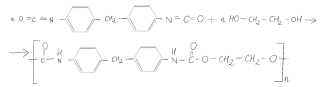 Poliuretan to polimer, który powstaje w wyniku polimeryzacji addycyjnej związków będących izocyjanianami z poliolami.