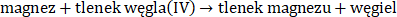 | Sposób odczytywania schematu modelowego | Dwa atomy magnezu i jedna cząsteczka reagują i dają dwie cząsteczki tlenku magnezu i jeden atom węgla. |