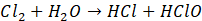 1. Równanie reakcji chloru z wodą: