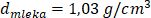 Aby obliczyć objętość należy pamiętać o zgodności jednostek. Masa mleka podana jest w kilogramach. Musimy zatem przekształcić ją na gramy.
