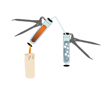 | Obserwacje | Zawartość próbki przyjmuje czerwonobrązowe zabarwienie. Woda wapienna ulega zmętnieniu pod wpływem wydzielającego się gazu. |