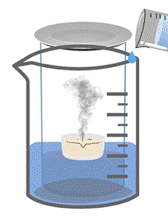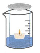 | Obserwacje | Na wodzie umieszczono palącą się świeczkę. W czasie palenia się świeczki pod przykryciem poziom wody podnosi się stopniowo. Po pewnym czasie obserwujemy zgaszenie świeczki. | ||