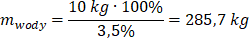 Wiemy, że masa soli wynosi 10 kg i stanowi to 3,5% roztworu, dlatego obliczamy masę roztworu, czyli wody oceanicznej.