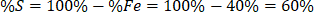 Odpowiedź: Mieszanina zawiera 40% żelaza i 60% siarki.