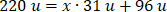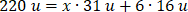 Ułóżmy równanie, które pozwoli nam obliczyć liczbę atomów tlenu x: