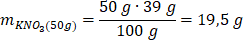 Obliczmy masę KNO3, która rozpuści się w 50 g wody: