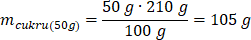 Obliczmy masę cukru, który rozpuści się w 50 g wody: