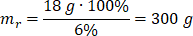 Skoro masa substancji rozpuszczonej to 18 g i stanowi 6% masy roztworu to 100% masy roztworu stanowi, ile gram? Układamy proporcję.