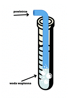 | Obserwacje | Powietrze po wprowadzeniu do wody wapiennej powoduje zmętnienie wody wapiennej, co świadczy o zawartości dwutlenku węgla w powietrzu. |