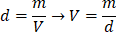 Objętość obliczamy ze standardowego wzoru na gęstość:
