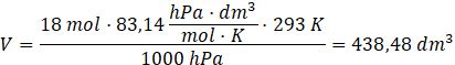 Obliczmy objętość wodoru korzystając z równania Clapeyrona: