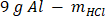 A zatem możemy stwierdzić, że aby roztworzyć 9 g glinu za pomocą 10% kwasu solnego musimy użyć roztworu HCl o masie 365 g. A zatem dane 300 g nie wystarczy.