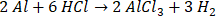 W reakcji dwa atomy glinu reagują z sześcioma cząsteczkami kwasu solnego, dlatego zapiszmy odpowiednią proporcję.