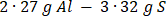 W reakcji dwa atomu glinu reagują z 3 atomami siarki, dlatego zapiszmy odpowiednią proporcję.