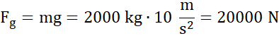 Ciężar jest iloczynem masy i przyspieszenia grawitacyjnego, a więc w opisywanym przypadku wyniesie 20000 N.