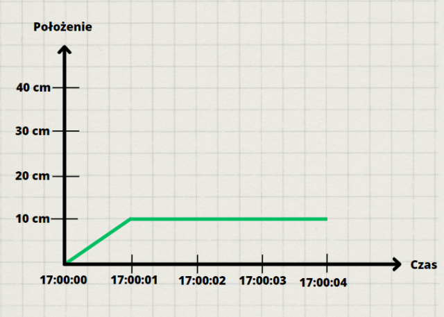 Narysuj wykres położenia w kolejnych chwilach, gdyby o godzinie 17:00:01 kolejka nagle się zatrzymała.