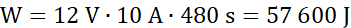 Odpowiedź: Prąd elektryczny wykona pracę równą 57 600 J.