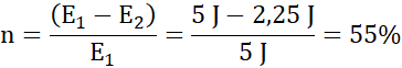 Maksymalna energia potencjalna po pierwszym odbiciu wynosi 2,25 J, a więc utracono 2,75 J energii, czyli 55%.