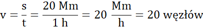 Jacht pokonuje w ciągu godziny 20 mil morskich, a więc jego prędkość wynosi 20 mil morskich na godzinę, co odpowiada 20 węzłom.