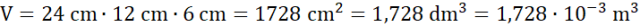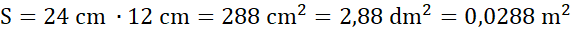 Są 3 prostokątne powierzchnie: 24 cm × 12 cm, 6 cm × 12 cm, 24 cm × 6 cm: