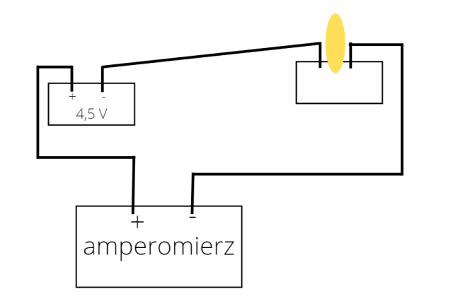 Pamiętaj, by połączyć plus amperomierza z plusem baterii oraz minus żarówki z minusem baterii.