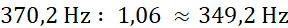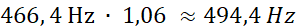 Częstotliwość dźwięku f1 wynosi około