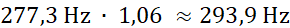 Częstotliwość dźwięku d1 wynosi około