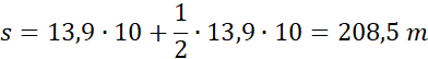Droga samochodu jadącego dalej ruchem jednostajnym i później zwalniającego.
