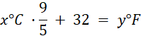Wzór pozwalający przeliczać stopnie Celsjusza i stopnie Fahrenheita: