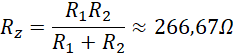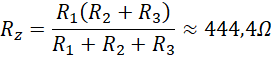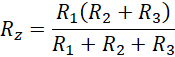 Rezystor 3 jest szeregowo połączony z 2, a ich szeregowy układ jest równoległy do rezystora 1, stąd: