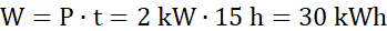 W – praca prądu elektrycznego [kWh],