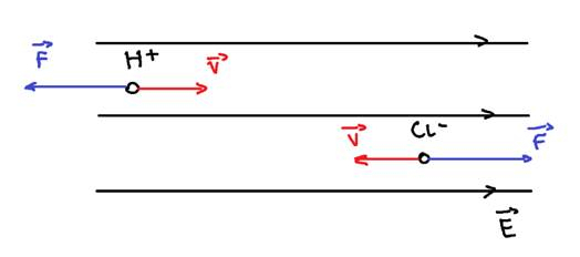 W tym zadaniu należy narysować siły działające na jony i prędkości tych jonów.
