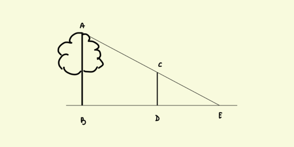 W tym zadaniu musisz powiedzieć, czy przy pomocy listewki można wyznaczyć wysokość drzewa. Narysuj rysunek.
